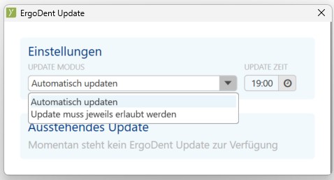 Seit einigen Monaten gibt es die Möglichkeit die ergodent-Updates selbständig vorzunehmen und Sie den Updatevorgang zu Ihren gewünschten Zeiten automatisch durchführen können.
